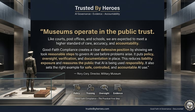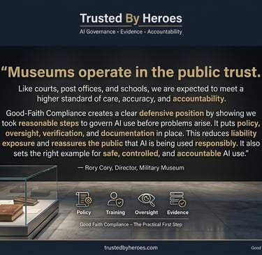 The Audit Anchor program establishes that foundation. It delivers structured AI governance education, a coherent company AI policy, staff training aligned to that policy, and independently timestamped records that document awareness and effort. This creates the initial evidence base required to demonstrate good-faith participation in emerging AI governance regimes and enables ongoing oversight and defensibility as rules evolve.