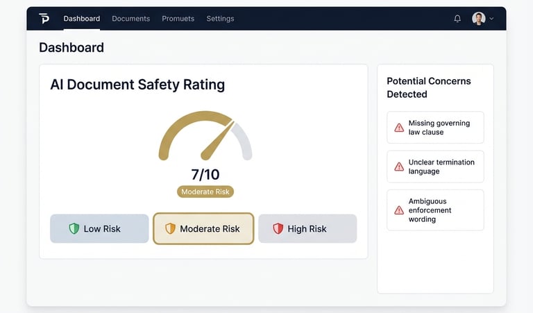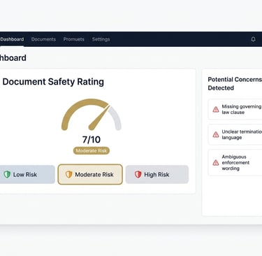 LegalAnchor performs an automated analysis and produces a safety rating and issue preview.