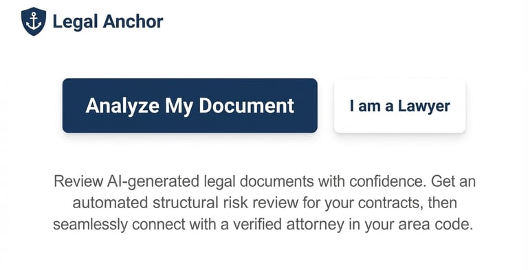 LegalAnchor is a document intake and issue-identification platform. It is not a law firm and does not provide legal advice. Issue notes provided by participating lawyers identify potential concerns but do not create an attorney-client relationship unless further engagement is agreed.
